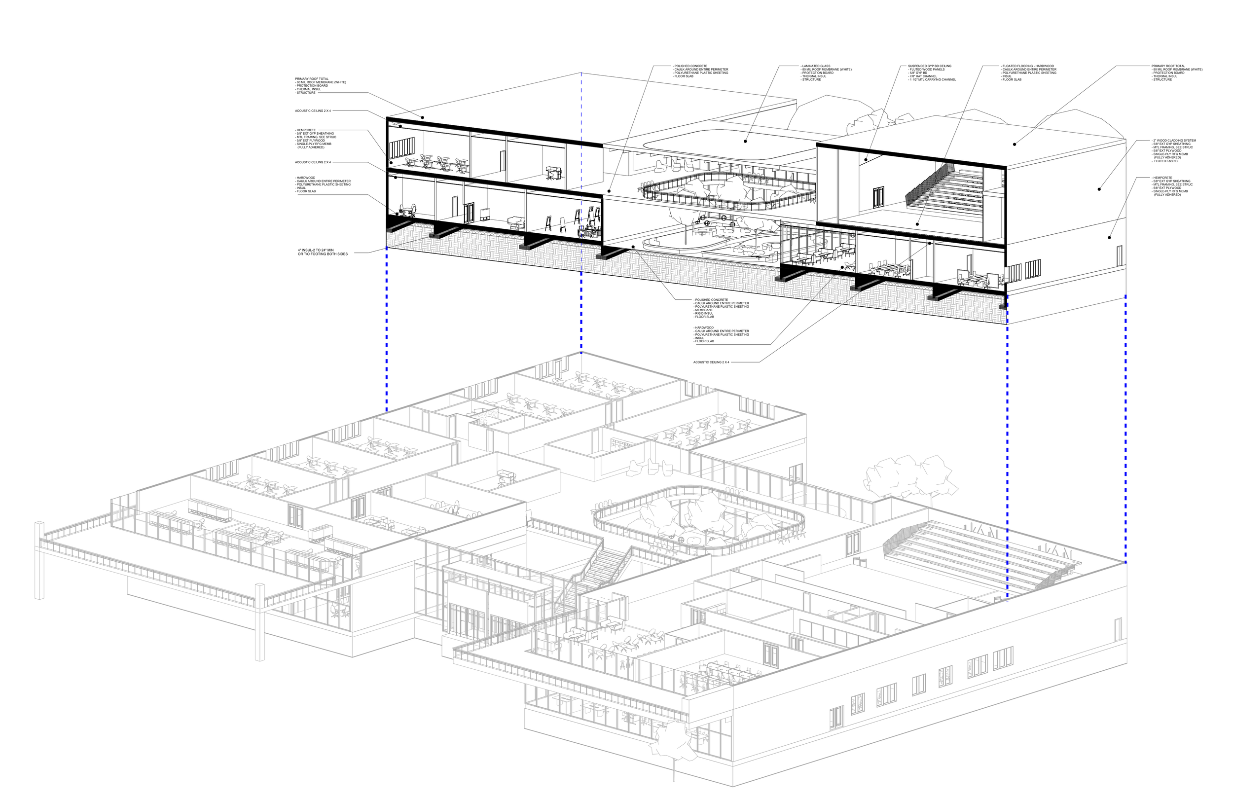 Located within Rome’s historic Villa Borghese park, Luce Verde is a high school designed to double as a flexible community learning hub. The design integrates academic, cultural, and social spaces, including classrooms, a theater, a cafeteria, and a public plaza, encouraging interaction between students and the broader community. Inspired by the surrounding landscape, the architecture emphasizes natural light, transparency, and fluid circulation, creating a campus that feels embedded in its context while offering a progressive model for shared education and civic space.